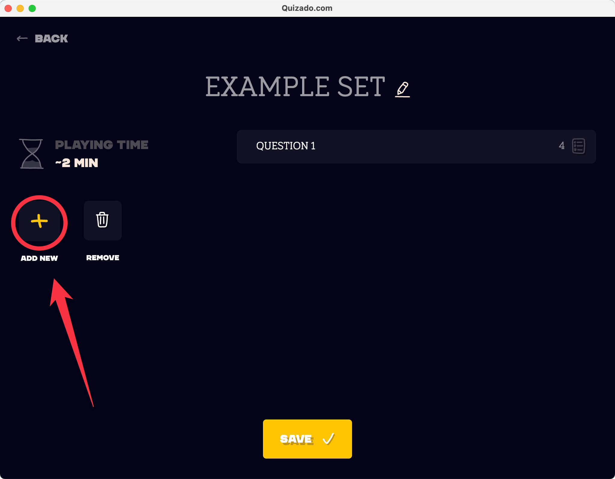 If you want to add a new question set, you'll be asked to title it first. Then, after saving your question set name, you can move to the page where you can add your own questions and answers to this set: