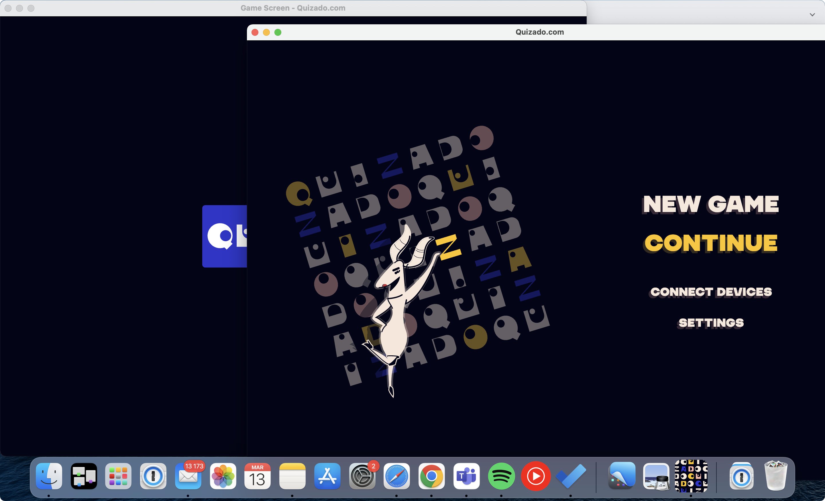 1. Run Quizado on your computer. You will see two screens on your desktop: the Control Screen for the host (on the left) and Game Screen for the participants (on the right).